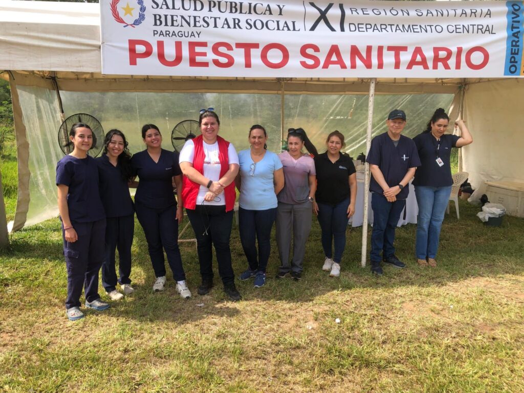 El compromiso de la UPAP con los peregrinos también se extendió desde la Filial San Lorenzo, donde equipos académicos y estudiantes formaron parte del despliegue sanitario en coordinación con la Undécima Región Sanitaria del MSPBS.