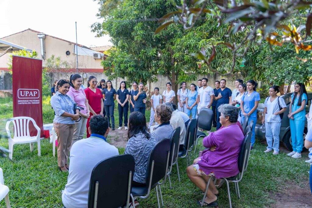 La Universidad Politécnica y Artística del Paraguay (UPAP), a través de su Filial Limpio, llevó a cabo una Jornada de Cuidado Integral del Adulto Mayor en el hogar sustituto Joayhu Renda, ubicado en la ciudad de Limpio. La actividad se desarrolló en el marco de las acciones de extensión universitaria y estuvo orientada a promover el bienestar de los residentes del hogar mediante atención básica de salud, orientación nutricional y actividades de movilidad.