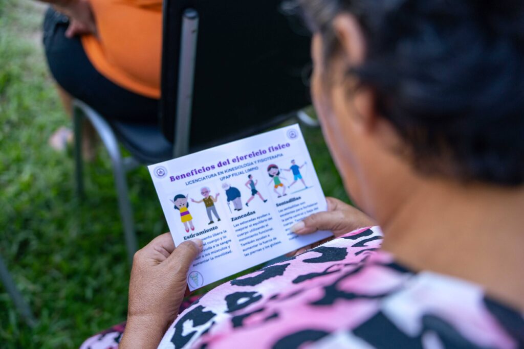 En tanto, los estudiantes de Kinesiología y Fisioterapia llevaron adelante una pausa activa con ejercicios de movilidad y entregaron materiales informativos sobre el cuidado del cuerpo y la importancia de mantener hábitos de actividad física adaptados a la edad.