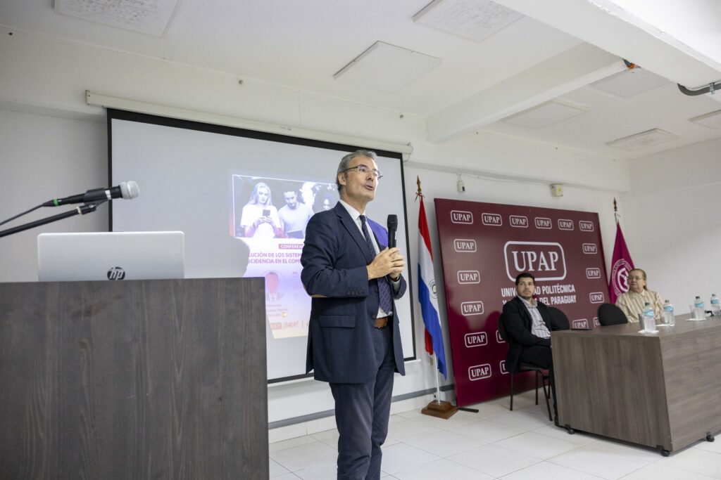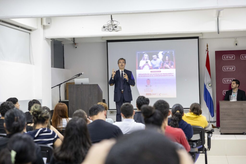 En conmemoración al Día Mundial del Correo, la Universidad Politécnica y Artística del Paraguay (UPAP) Filial Luque llevó a cabo, el jueves 9 de octubre, la conferencia magistral titulada “Evolución de los sistemas de mensajería y su incidencia en el comportamiento social”, a cargo del reconocido catedrático de Historia Contemporánea, de la Universidad de Valladolid, España, Dr. Ricardo Martín de la Guardia. La actividad se desarrolló en el Salón Auditorio de la mencionada Filial, con la presencia de más de 120 estudiantes, docentes y autoridades universitarias.
