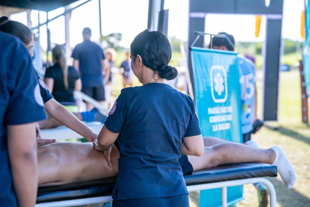 En este contexto, la UPAP Filial Ñemby desarrolló una actividad de Extensión Universitaria orientada a la práctica de la fisioterapia deportiva, permitiendo a los estudiantes aplicar sus conocimientos en un entorno real. El director de la carrera de Kinesiología y Fisioterapia, Lic. David Villalba, explicó que el objetivo principal fue fortalecer la formación práctica de los estudiantes mediante actividades extra muros, vinculando la teoría con la experiencia directa en un evento deportivo de gran magnitud.
