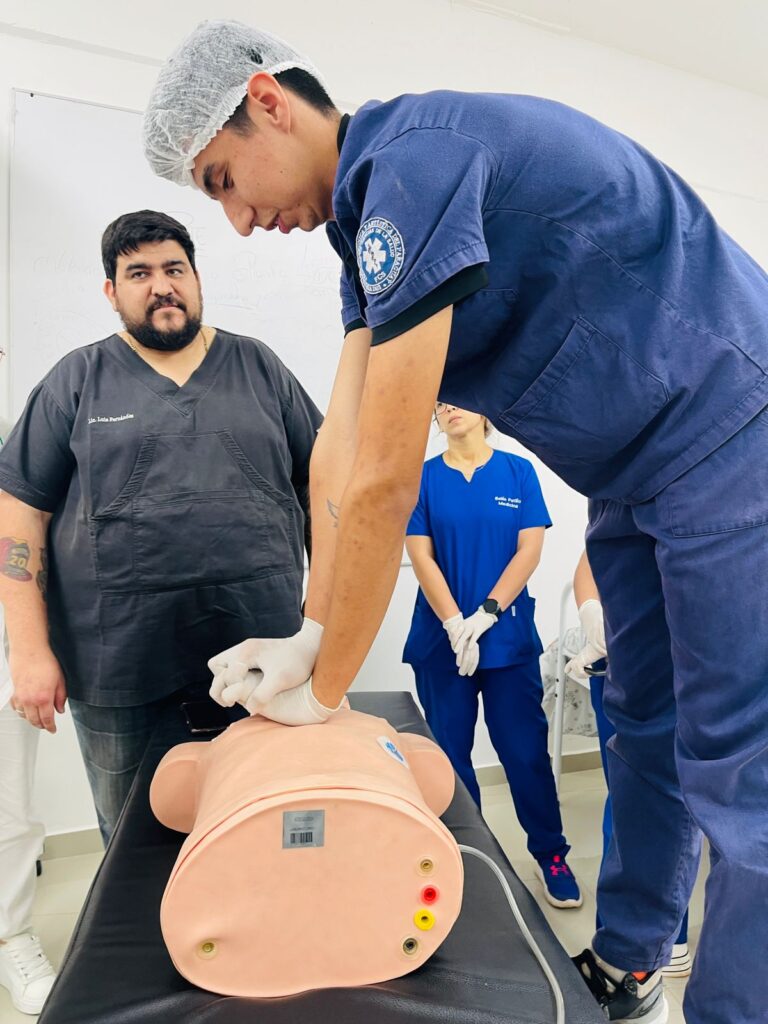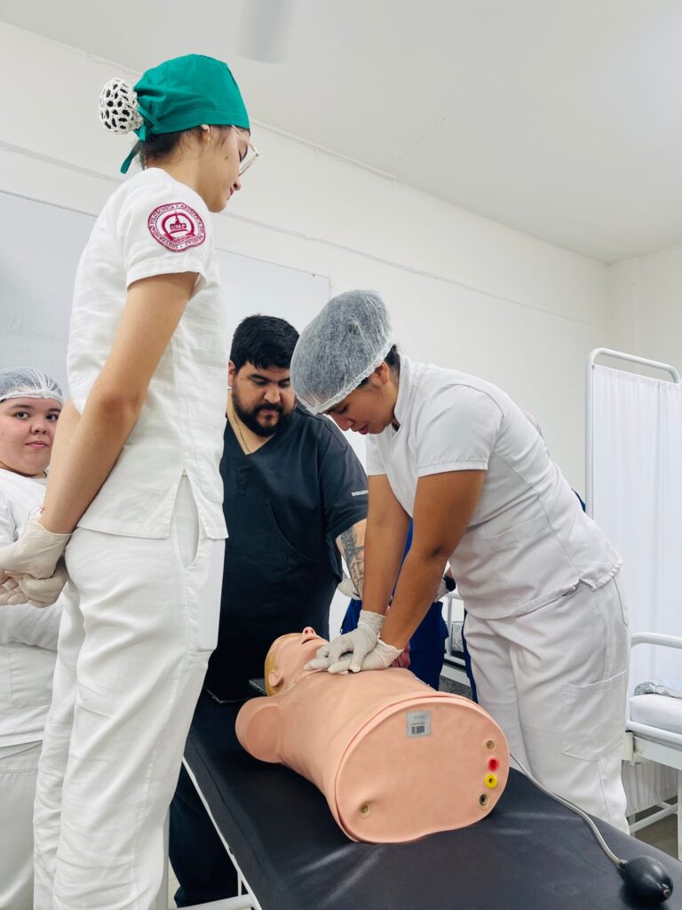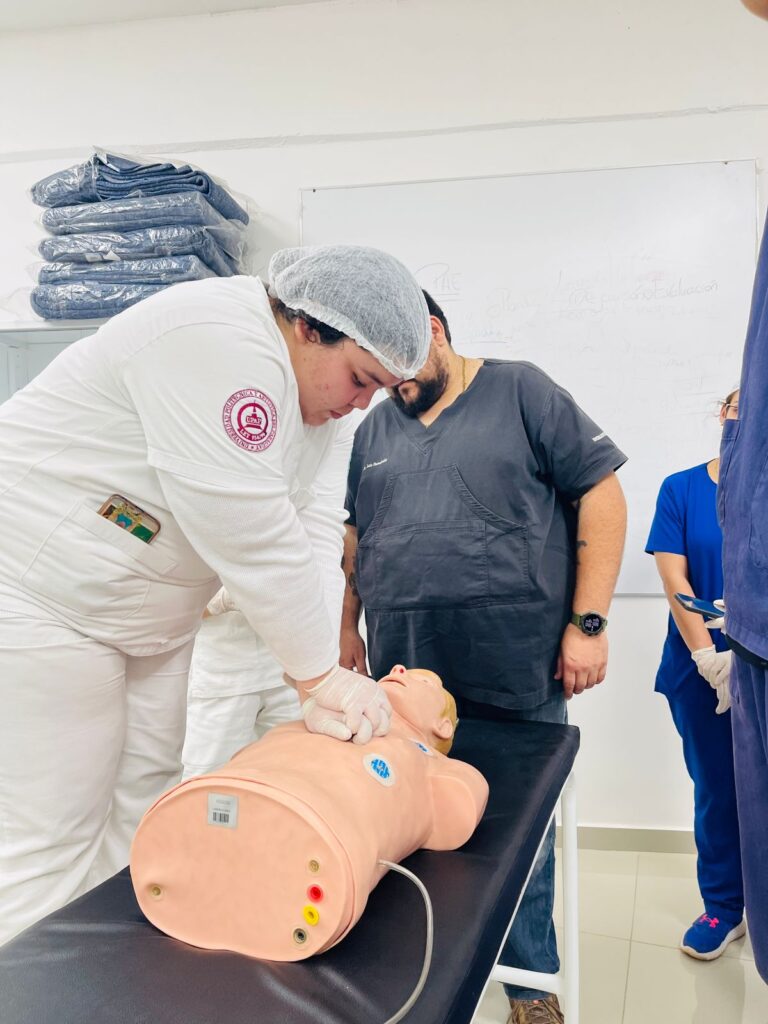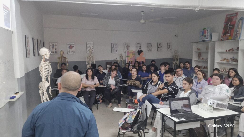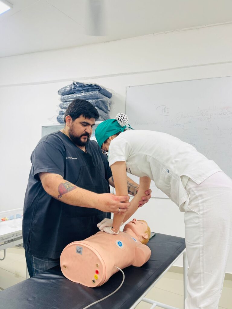 Durante la jornada, los estudiantes participaron de un espacio integral de aprendizaje dividido en dos etapas: en el turno mañana se abordaron los fundamentos teóricos sobre la detección temprana del ACV y el manejo inicial del paciente, mientras que en el turno tarde se desarrollaron las prácticas, centradas en reanimación cardiopulmonar (RCP), primeros auxilios, técnicas de intubación y otros procedimientos esenciales para la atención prehospitalaria.