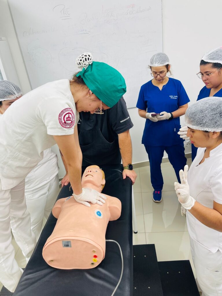 La actividad se desarrolló en la Sala de Simulaciones de Enfermería de la Filial, bajo la dirección de la Mg. Ruth Alfaro, directora de la carrera de Enfermería, y contó con la participación de 70 estudiantes de las carreras de Medicina, Enfermería, Odontología, Kinesiología y Fisioterapia, y Nutrición.