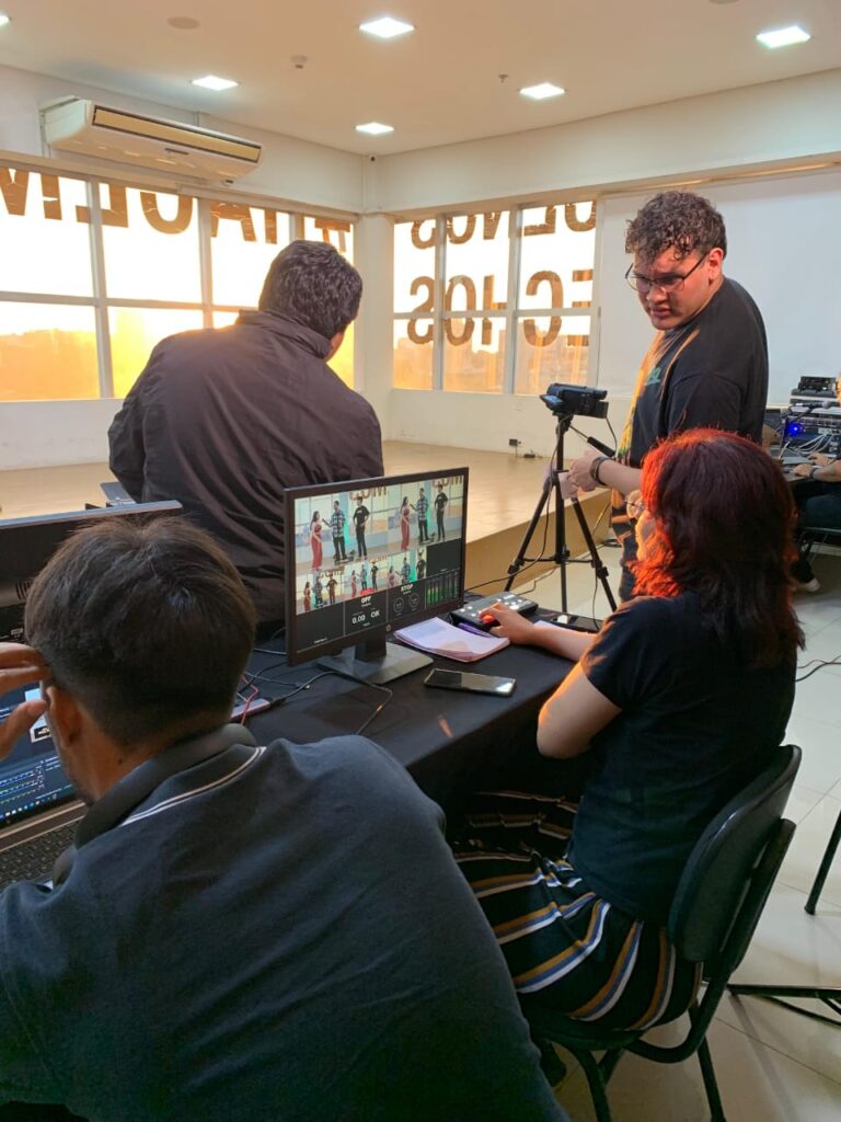 Durante la jornada, los estudiantes asumieron roles operativos y creativos para llevar adelante cada etapa del programa. Las dinámicas incluyeron el montaje técnico de cámaras, iluminación, micrófonos, intercom, switcher y monitores, así como la distribución de funciones en producción, dirección, conducción y operación técnica.