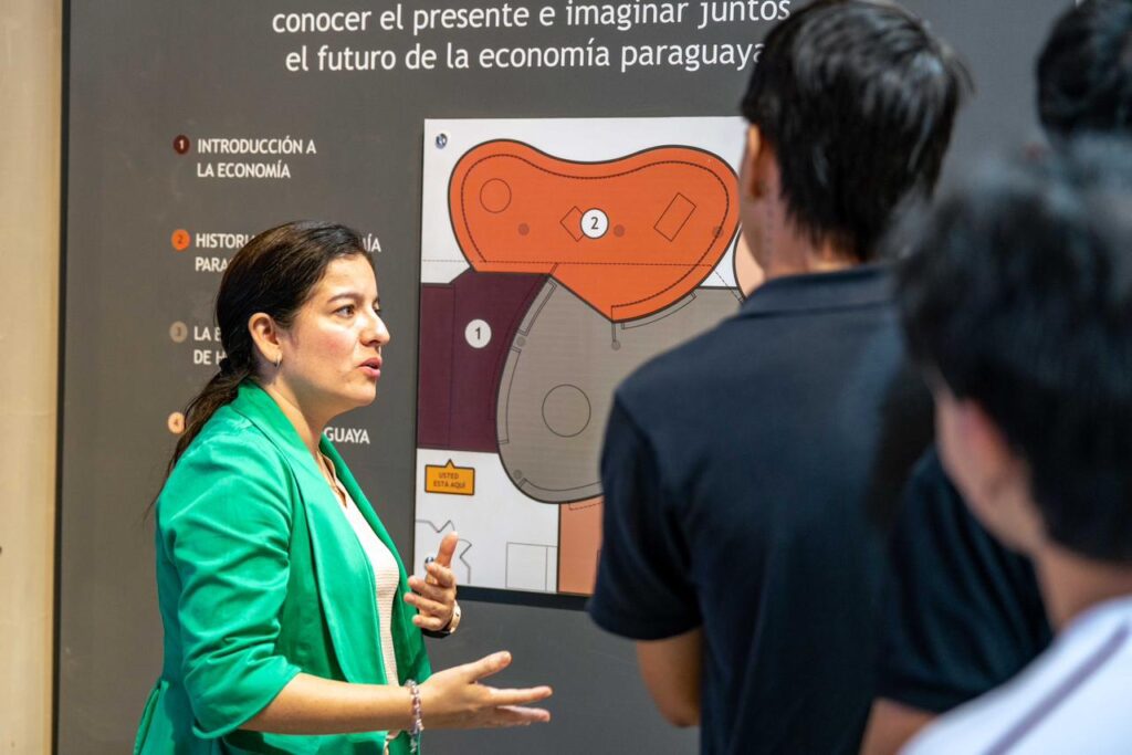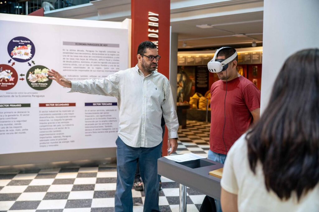 El museo ofreció un recorrido autoguiado, lo que permitió a los estudiantes explorar de manera dinámica e interactiva los distintos períodos del desarrollo económico paraguayo. Durante la visita, los participantes identificaron los principales sectores productivos de cada etapa, analizaron los cambios registrados en infraestructura, industria y tecnología, y observaron la evolución de los sistemas productivos y de la organización del trabajo. Para enriquecer el aprendizaje, los estudiantes utilizaron herramientas tecnológicas disponibles en el recinto, como lentes de realidad virtual y paneles interactivos.